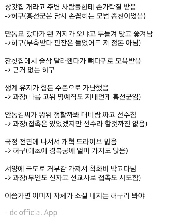우리가 흔히 아는 대원군의 이미지는 카네히가시 후미히토가 쓴 운현궁의 봄 소설의 이미지라고 함.