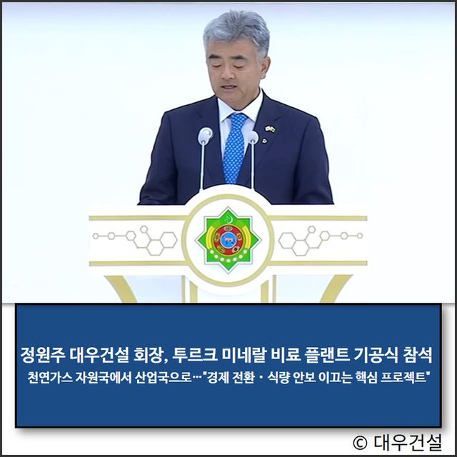 정 회장은 "이번 기공식은 투르크메니스탄의 풍요로운 미래와 지속 가능한 발전을 향한 새로운 출발점"이라며 "미네랄 비료 플랜트가 가스화학 산업과 국가 농업 발전을 이끌 핵심 프로젝트인 만큼, 현지와의 긴밀한 협력을 통해 최고의 품질로 신뢰에 보답하겠다"고 전했다.