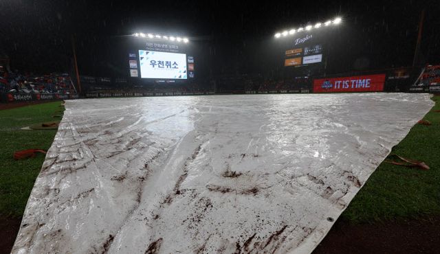 17일 대전 한화생명 볼파크에서 열릴 예정이던 2025 신한 SOL뱅크 KBO 포스트시즌 PO 1차전 삼성과 한화의 경기는 비로 취소됐다.