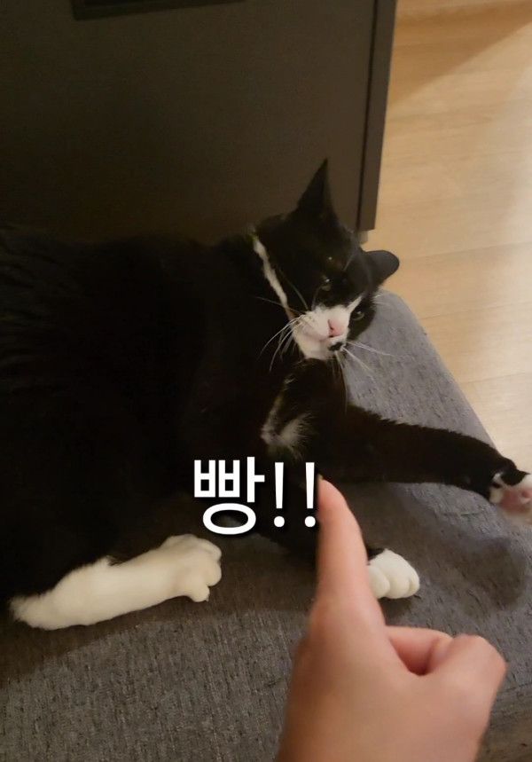 페퍼도 못하는 개인기 '빵!' 을 쿠크가 합니다. 🐈⬛