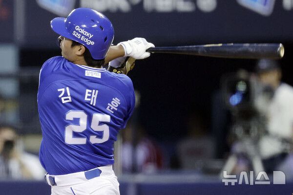 삼성 김태훈, 폰세 상대로 역전 솔로포 '쾅'…PS 첫 홈런