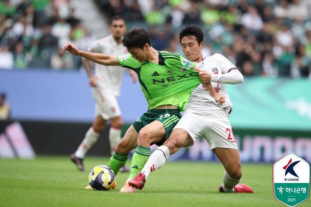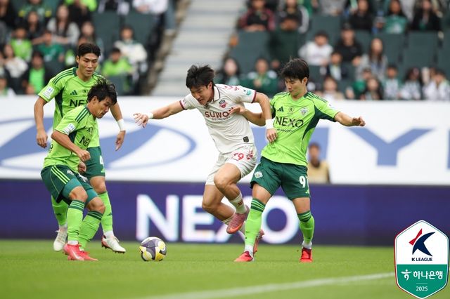 수원FC는 결정적인 기회를 놓쳤다. 후반 28분 코너킥 이후 뒤로 흐른 공을 안드리고가 강력한 왼발 슛으로 연결했는데 송범근 정면으로 향하고 말았다.