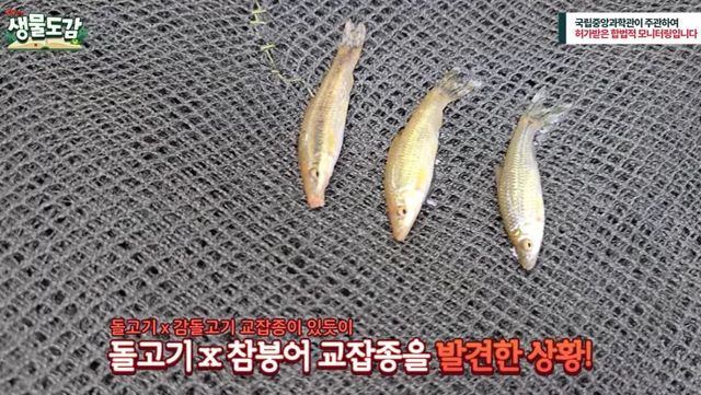 돌고기, 돌고기와 참붕어의 교잡종, 참붕어의 비교 모습. / 유튜브 'TV생물도감'