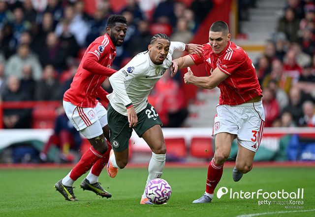 노팅엄이 땅을 쳤다. 전반 18분 첼시의 실수를 유도한 깁스-화이트가 중거리 슈팅을 때렸다. 골대 위로 살짝 빗나갔다. 전반 19분 깁스-화이트의 발리 슈팅도 높게 떴다. 첼시도 분위기를 끌어 올렸다. 전반 28분 제임스의 다이렉트 프리킥 슈팅은 골키퍼 품에 안겼다.