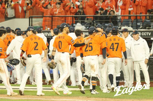 하지만 단기전이다. 두 차례 역전을 해내며 잡은 리드를 지키지 못하고 동점을 허용했다면, 팀 분위가 크게 가라앉을 수 있었다. 결국 김경문 감독은 교체 카드를 꺼내들었다. 결과도 좋았다. 김범수는 김지찬과 김성윤, 두 교타자를 차례로 범타 처리하며 한화이 리드를 지켜냈다.
