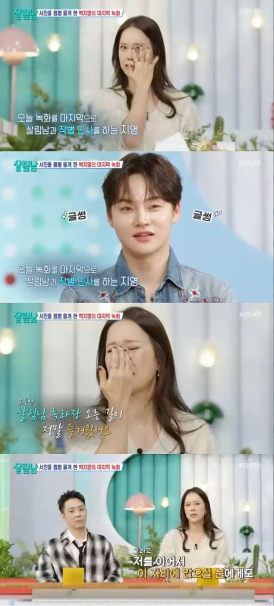 백지영은 "제작진들한테도 자주 얘기했지만 진짜 녹화장으로 오는 길이 즐거웠다. 우리 스태프들도 다 착하고 좋지 않으냐. 잊을 수 없는 시간이 된 것 같다"고 말하며 눈물을 쏟았다.