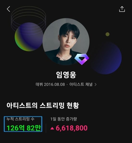 최근 임영웅은 음원사이트 멜론에서 누적 스트리밍 126억 회를 돌파했다.