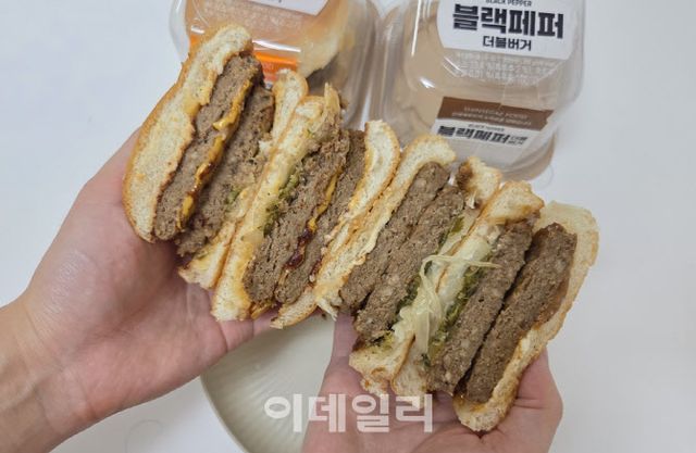 첫인상은 꽤 괜찮았다. 패티의 육향이 은근하게 퍼지고, 부서지지 않으면서 결이 살아 있는 식감이 의외였다. 고기 사이사이에 구운 양파와 다진 피클이 씹히며 짭조름한 감칠맛을 더했다. ‘더블비프치즈버거’는 이름처럼 무난한 구성, ‘블랙페퍼더블버거’는 진한 후추 풍미가 혀를 자극했다. 편의점 버거지만 기본기 탄탄한 프랜차이즈 기본 라인업과 비교해도 나름 경쟁력이 있다.