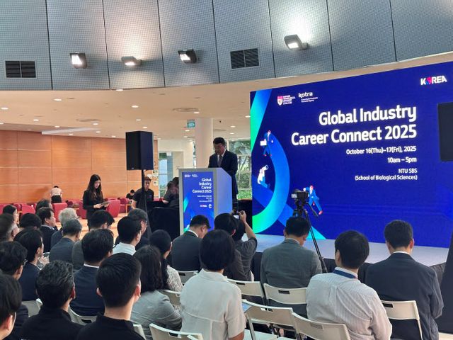 대한무역투자진흥공사(KOTRA·코트라)는 국내 혁신기업 16개사로 구성된 인재유치 사절단을 싱가포르에 파견해 16일부터 17일까지 양일간 싱가포르 난양공대(NTU)에서 ‘글로벌 인더스트리 커리어 커넥트, 싱가포르’ 행사를 진행했다고 19일 밝혔다.