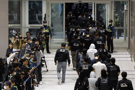 앞서 캄보디아에 구금된 64명이 18일 새벽 2시쯤 국내 송환을 위한 전세기에 탑승하며 경찰에 체포됐다. 이들은 오전 8시35분께 인천국제공항에 내려 관할서로 이동해 조사를 받고 있다. 64명은 △충남경찰청(45명) △경기북부청(15명) △대전경찰청(1명) △서울 서대문경찰서(1명) △경기남부청 김포경찰서(1명) △강원 원주경찰서(1명) 등 전국 각지에 분산됐다.