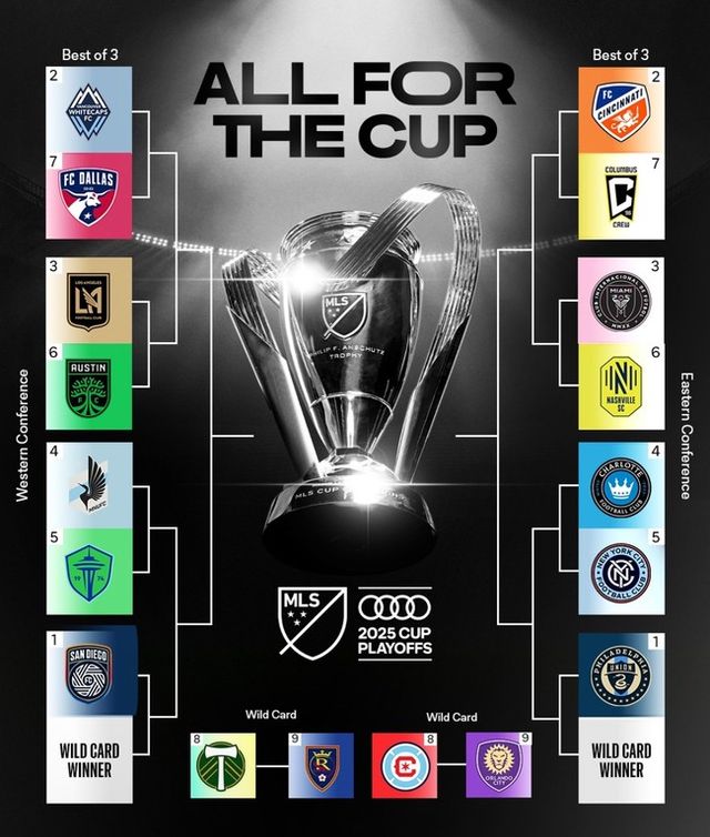 FC신시내티vs콜럼버스 크루, 인터 마이애미vs내슈빌 / 샬롯FCvs뉴욕시티FC, 필라델피아 유니온vs와일드카드 승자가 동부 컨퍼런스 플레이오프 대진이다.