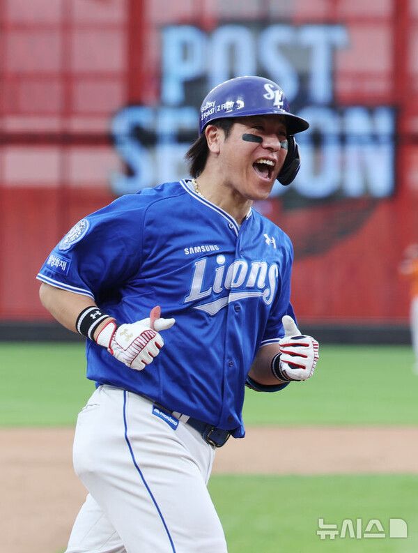 뉴시스 보도에 따르면, 강민호는 19일 대전 한화생명볼파크에서 벌어진 2025 신한 쏠뱅크 KBO 포스트시즌 PO 2차전에 8번 타자 포수로 선발 출전해 9회초 홈런을 때려냈다.