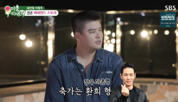 또 “결혼식 사회는 웹툰 작가이자 방송인 기안84, 축가는 사촌 형이기도 한 환희 형이 한다”고 말했다. 이어 윤시윤과 정준하가 “그러면 우리는 뭘 해주면 되느냐”고 묻자 두둑한 축의금이라고 장난스럽게 말해 웃음을 자아냈다.