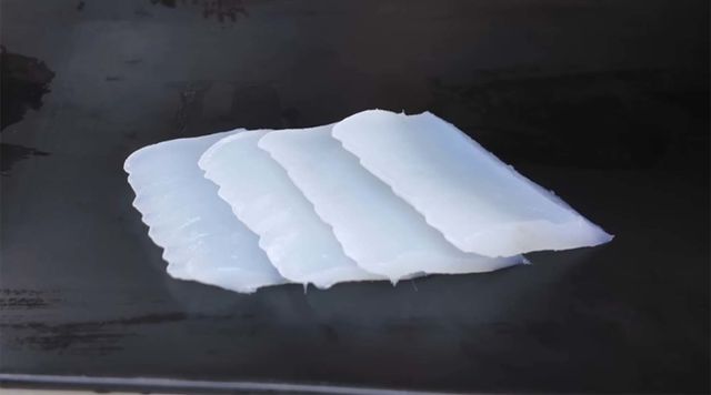 날개오징어 손질은 쉽지 않다. 몸통에 내피와 외피가 있기 때문이다. 김민성은 "한 번 벗기면 끝날 줄 알았는데 또 젖히면 또 나온다"라면서 "몸통 살이 두껍고 단단해서 칼이 잘 안 들어간다"고 했다. 얇은 껍질이 녹아 붙은 부위는 칼로 박박 밀어내야 했다. 김민성은 "껍질을 제대로 벗기지 않으면 익혀도 너무 입에 걸린다"며 껍질 제거의 중요성을 강조했다.