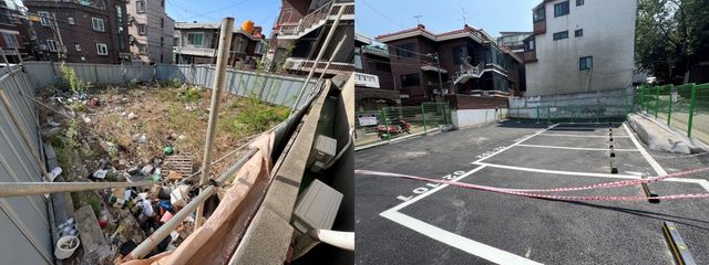 자투리땅 주차장 공사 전후 사진 / 영등포구 제공