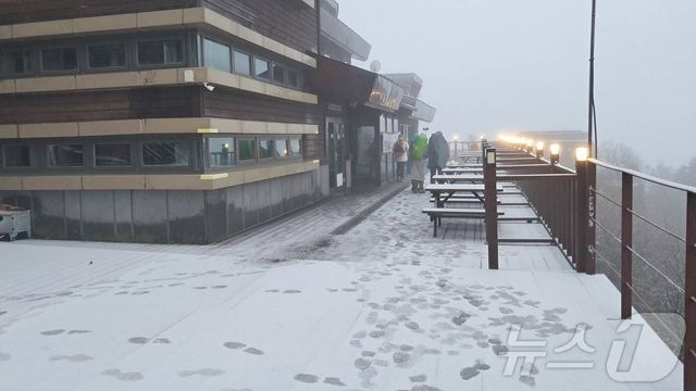 20일 오전 설악산 고지대에 올해 첫눈이 관측됐다. 올해 설악산 첫눈은 지난해(10월 19일)보다 하루 늦고 2023년(10월 21일)보다 1일 빠른 것이다 / 설악산국립공원사무소 제공, 뉴스1