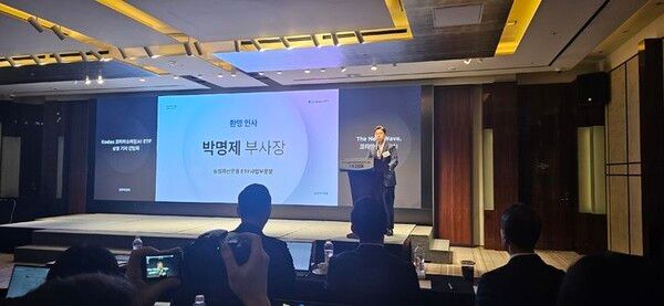 박명제 삼성운용 ETF부문장(부사장)은 20일 서울 소공동 웨스틴조선호텔에서 'KODEX 코리아소버린AI' ETF의 상장을 기념해 기자간담회를 열고 "KODEX를 믿고 투자해주신 고객 덕분에 2002년 국내 최초 ETF인 KODEX 200을 내놓은 이후 23년 만에 업계 처음으로 순자산 100조원을 달성했다"며 "업계 1위 운용사로서 이번 순자산 100조 달성을 발판삼아 앞으로도 혁신적인 투자 상품들로 대한민국 자본시장의 성장에 기여하고자 한다"고 밝혔다.
