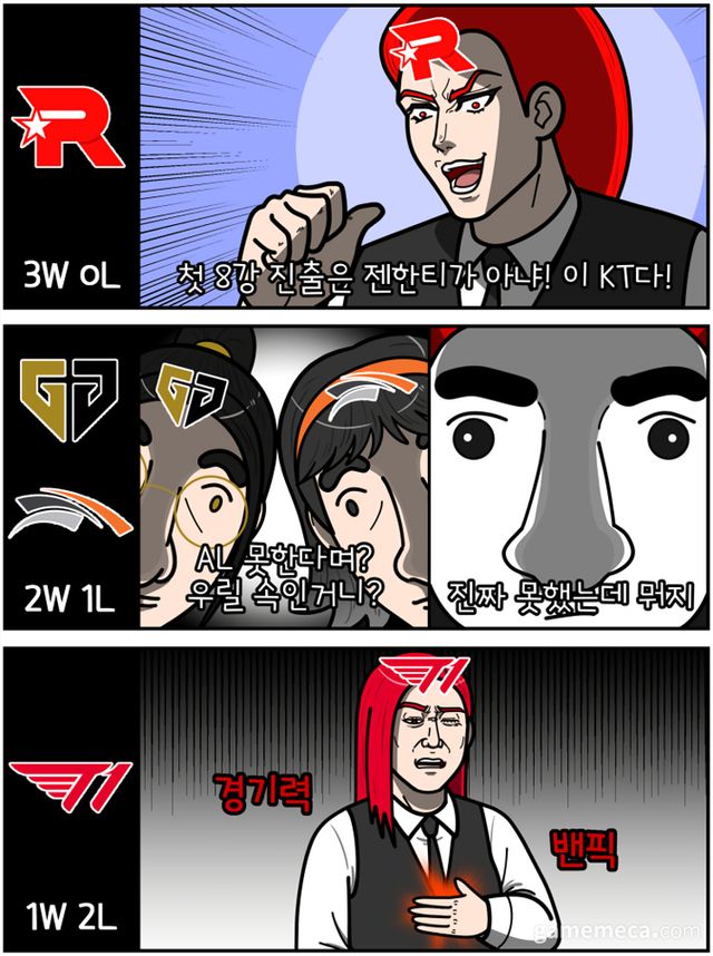 올해 최강팀을 뽑는 리그 오브 레전드 월드 챔피언십(이하 롤드컵)이 1주차 경기를 마쳤습니다. 올해 롤드컵에는 젠지, 한화생명, kt, T1까지 한국팀 4팀이 출전했는데요. 현재 가장 쾌조를 달리는 팀은 kt입니다. 중국 강팀 'TES'를 2 대 0으로 누른 깔끔한 밴픽과 경기력에, 대진운까지 받쳐주며 3전 전승으로 8강 진출을 확정지었습니다.