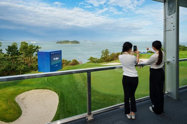 18번홀 그린 옆 2층에 자리 잡고 있어 대회장의 해안 절경과 선수들의 클러치 퍼팅 장면을 한눈에 조망할 수 있고 대회의 긴장감과 감동을 동시에 느낄 수 있다고 전했다.
