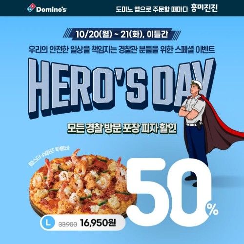 도미노피자가 경찰의 날 80주년을 맞아 '히어로즈데이'를 진행한다.