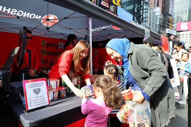 미국 소비자가 타임스퀘어에 마련된 농심 신라면 부스 현장을 체험하고 있다. ⓒ 농심