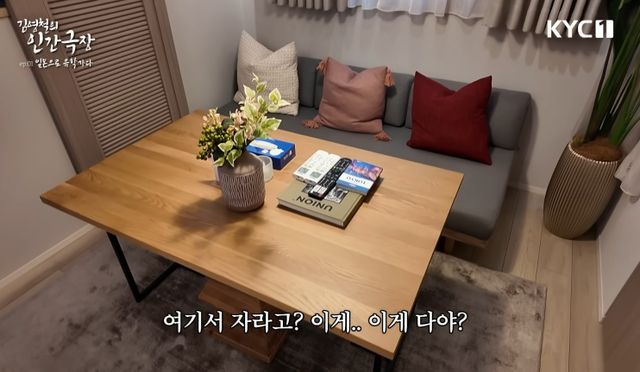 8박 9일 동안 머물 집에 들어간 김영철은 "여기에서 자라고? 이게 다야?"라며 침대도 없이 소파만 덜렁 있는 작은 집에 충격을 받는가 하더니 벽 뒤에서 나온 침실에 안도했다.