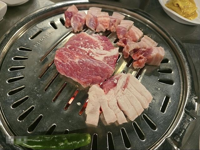 A씨가 공개한 사진에는 살코기보다 지방층이 훨씬 두꺼운 고기 조각이 불판 위에 올려져 있는 모습이 담겼다.