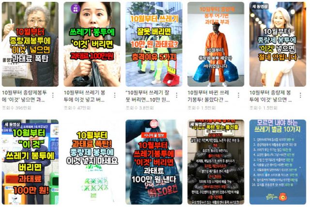 최근 유튜브에는 쓰레기 분리배출 관련 허위 영상이 잇따라 올라오고 있다. 대부분 ‘전국적으로 단속이 강화되면서 과태료 폭탄을 맞는 사례가 속출한다’는 식의 유사한 내용을 담고 있다.