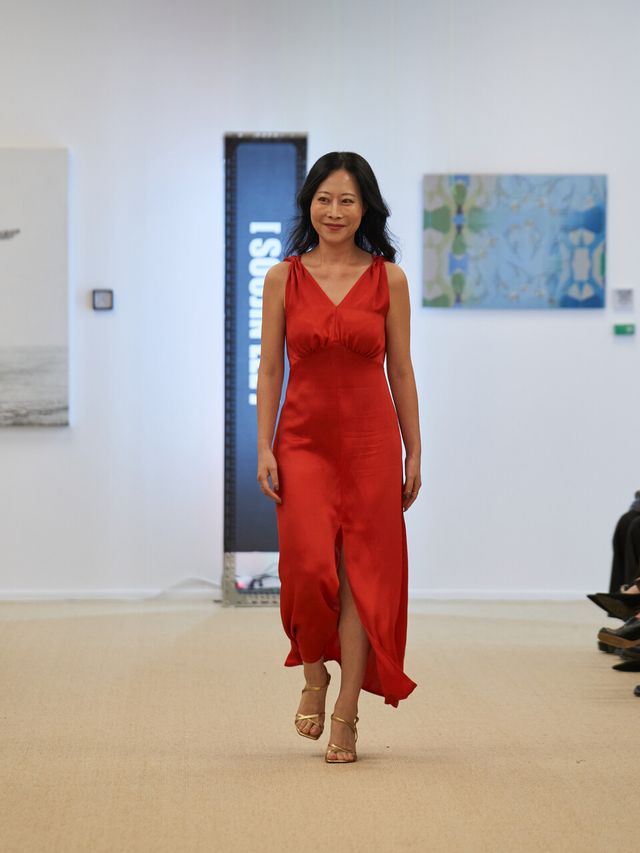 이수진 디자이너는 영국 유학 시절 입었던 한복도 현대적으로 리디자인해 공개했다. 이 한복은 리사이클한 소재로 제작된 ’서스테이너블 패션’으로 한국적 정체성과 글로벌 감성이 결합했다.