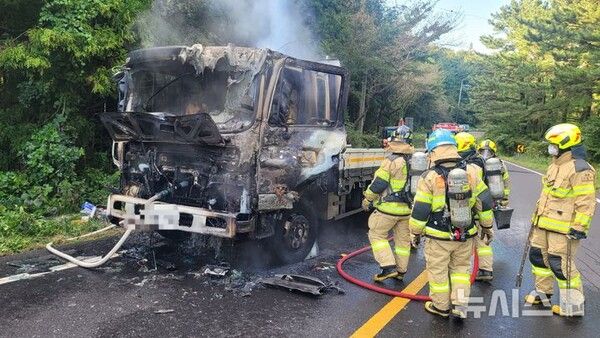 뉴시스 보도에 따르면, 20일 제주소방안전본부에 따르면 이날 오후 3시46분께 제주시 관음사 소재 도로를 달리던 5t 트럭에서 연기가 난다는 신고가 접수됐다.