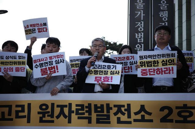 탈핵부산시민연대와 환경운동연합은 20일 서울 서초구 서울행정법원 앞에서 기자회견을 열고 “원안위의 고리 2호기 수명연장 위법 심의·의결 중단을 촉구한다”며 법원에 △원안위의 수명연장 심의를 정지하는 내용의 소집행위 효력정지 가처분 신청서 △원안위 심의 자체가 무효라는 취지의 본안 사건 신청서를 제출했다.