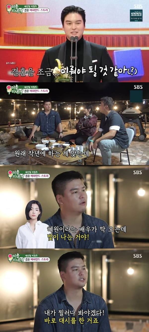 이에 이장우는 "원래 작년에 결혼하는 게 맞았다"며, "근데 장모님을 찾아뵙고 1년만 더 있다가 하겠다고 했다. 다행히 흔쾌히 허락해주셨다"고 밝혀 결혼 연기의 전말이 방송 욕심이 아닌 양가 협의에 따른 것임을 해명했다.