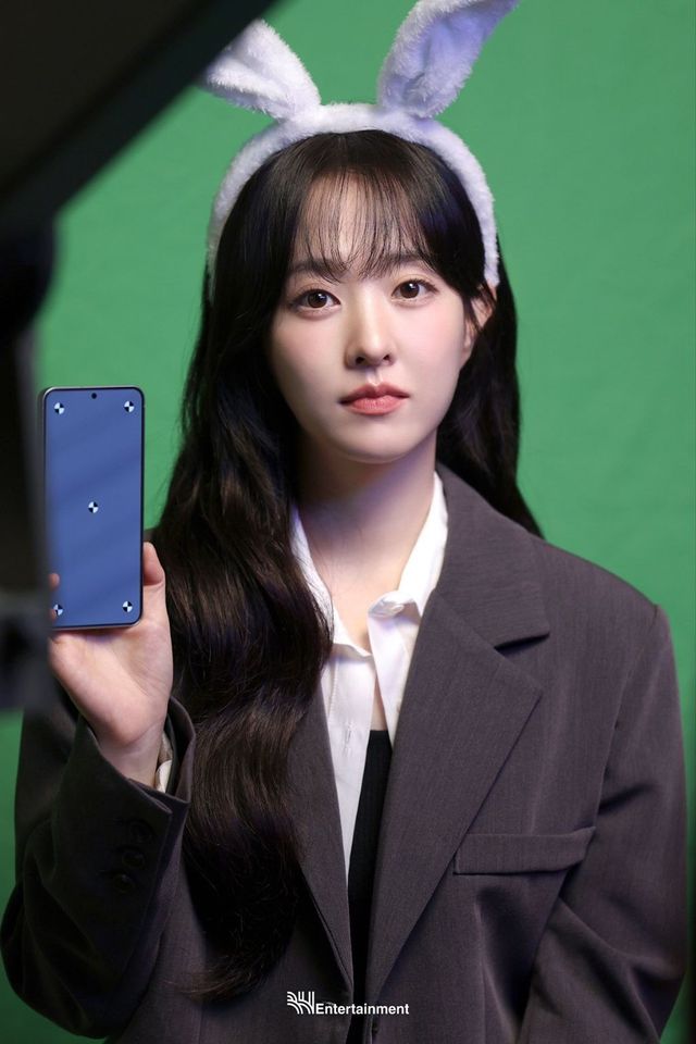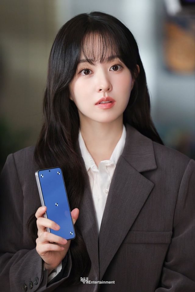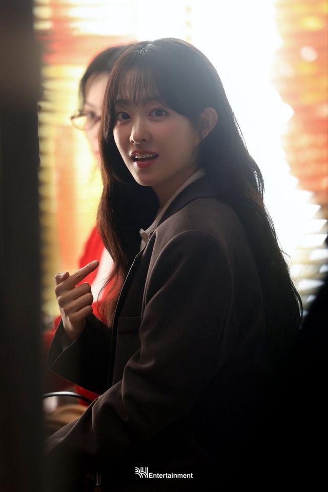 클래식한 체크 포인트와 그레이 니트의 조화, 프로미스나인 박지원의 세련된 데일리 룩