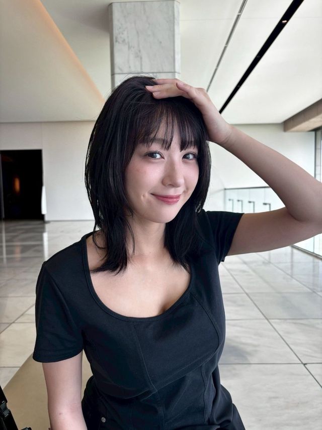 우아한 곡선의 미학, 에스파 카리나의 고혹적인 블루 골지 드레스 룩