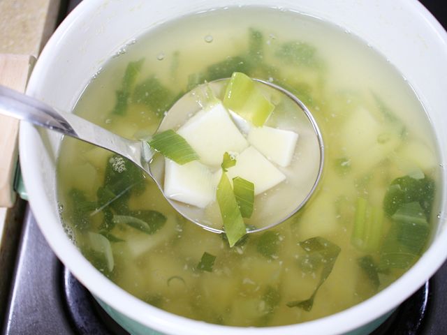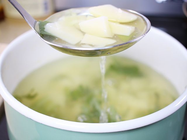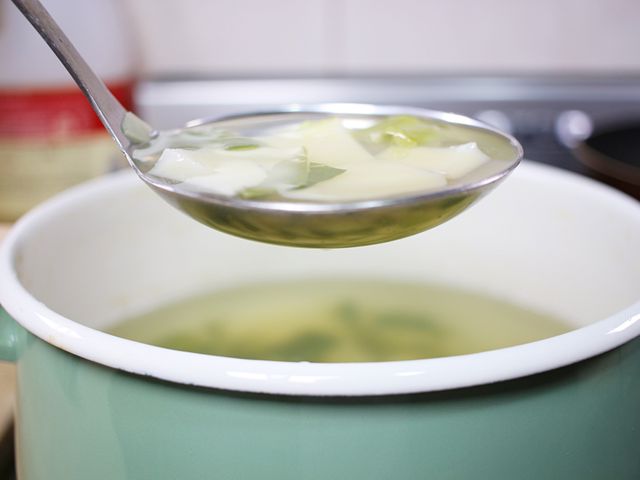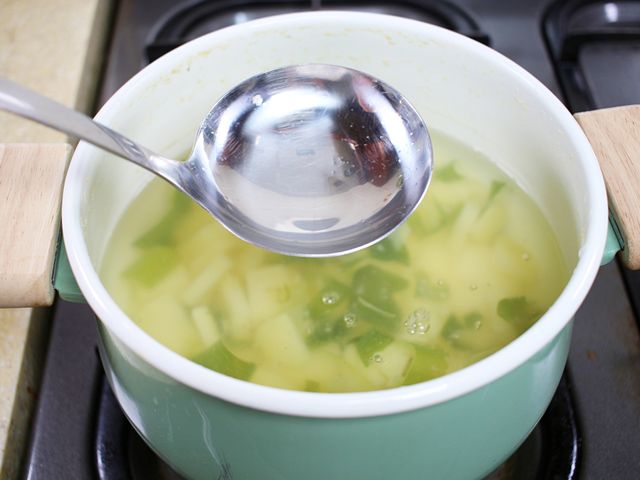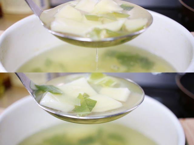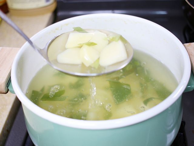 국자 아래로 주르륵 흐르는 국물…