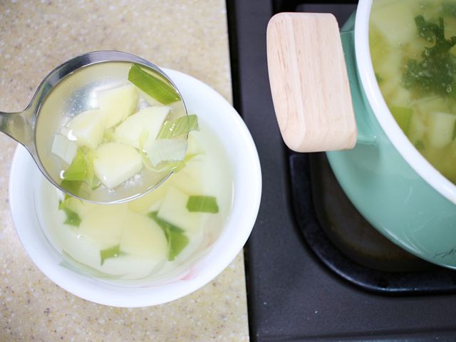 그런데 국을 그릇에 옮길 때마다 국자 밑으로 국물이 주르륵…