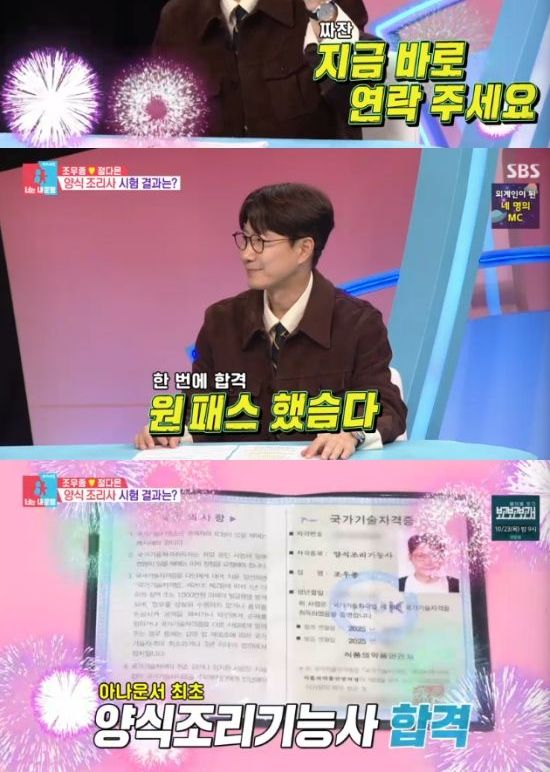 (엑스포츠뉴스 오수정 기자) '동상이몽2'에서 조우종이 양식 조리 기능사 자격증을 취득하면서 국내 최초 '아나셰프'가 됐다.