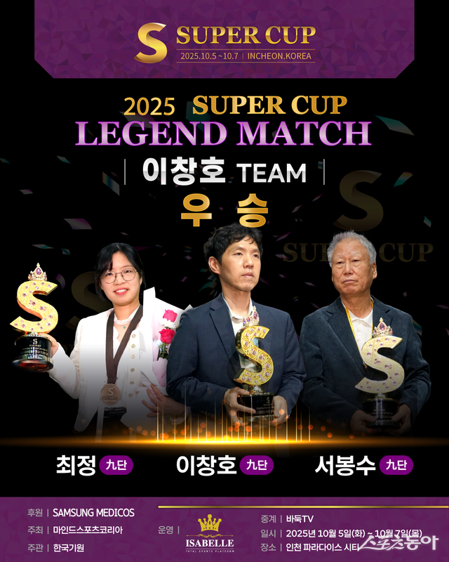 바둑 종목에서는 ‘국보급 기사’로 불리는 조훈현(9단), 이창호(9단), 유창혁(9단), 서봉수(9단) 등 한국 바둑의 전설들이 한 무대에 올라 세대를 초월한 명승부를 펼쳤다.
