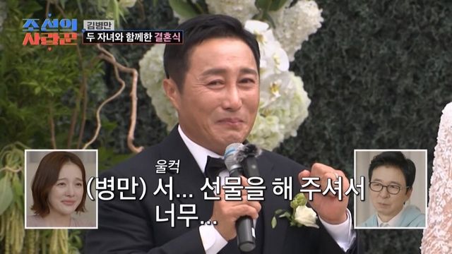 김병만은 “우리 아내를 잘 키워주셔서 감사하다. 이런 선물을 주셔서…”라며 말을 잇지 못하고 눈물을 흘렸다. 하객들과 출연진들도 함께 울며 감동을 나눴다. 그의 아내는 “나의 보석을 지키기 위해 제가 선택한 것과 힘든 시간 함께해주신 부모님 너무 감사하다”고 인사했다.