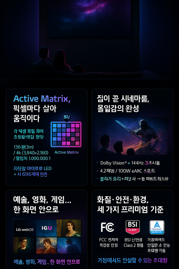 이 제품은 단순히 '대형 TV'가 아니라, 거실 전체를 시네마·갤러리화하는 공간 경험형 디스플레이로 포지셔닝된다.