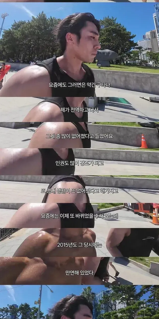 지금은 영내생활도 없어지고 인권 강조로 많이 없어졌다고 들었는데, 당시엔 구타가 만연…