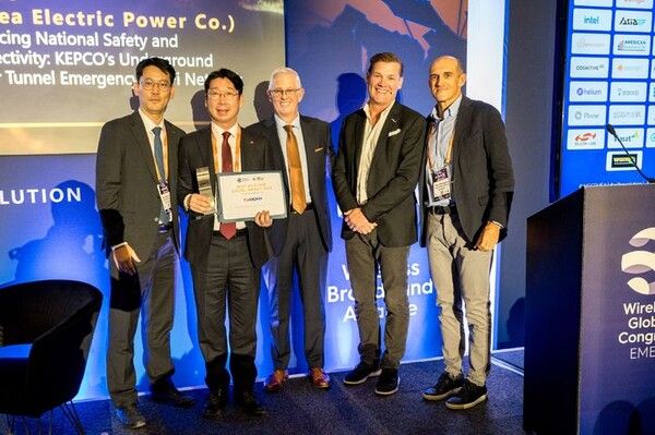 한국전력공사가 지난 15일(현지 시간) 프랑스 파리에서 개최된 '2025 WBA 인더스트리 어워드'에서 전력구 특화 비상통신망 기술의 공공 서비스 혁신성을 인정받아 '사회적 가치 창출부문 대상(Best Wi-Fi for Social Impact)'을 글로벌 유틸리티 최초로 수상했다고 21일 밝혔다.