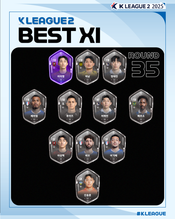 ‘하나은행 K리그2 2025’ 35라운드 MVP는 부천 이의형이 차지했다. 이의형은 19일(일) 부천종합운동장에서 열린 부천과 천안의 경기에서 멀티골을 기록하며 부천의 2대1 승리를 이끌었다.