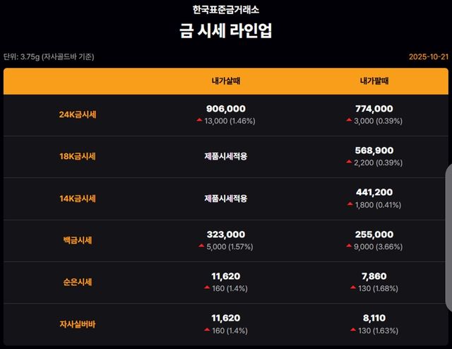 순금(24K) : 매입가 90만 7000원 / 매도가 77만 3000원
