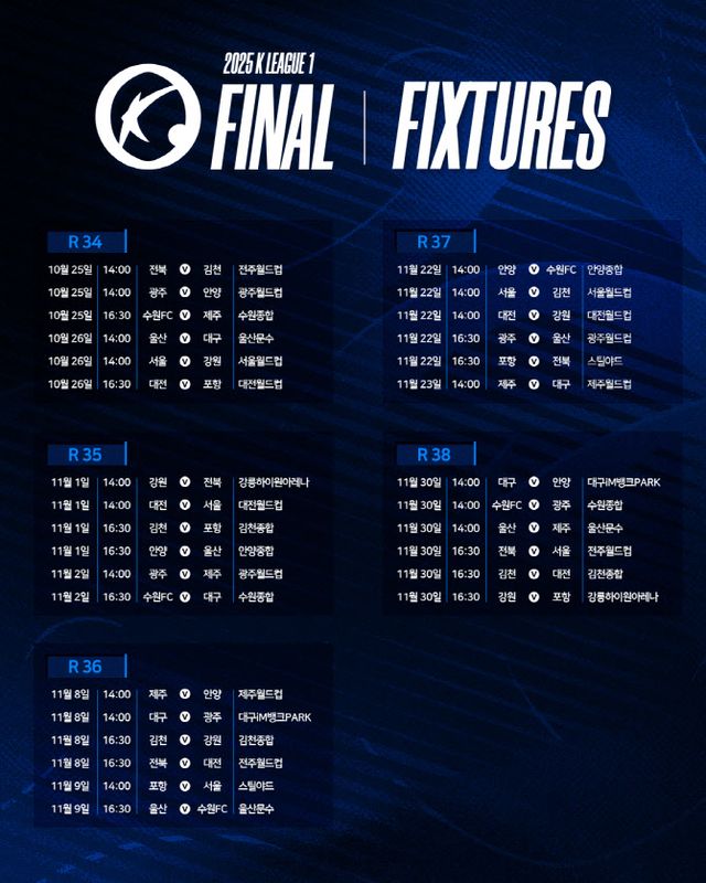 한국프로축구연맹은 하나은행 K리그1 2025 파이널 라운드 일정을 20일 발표했다.