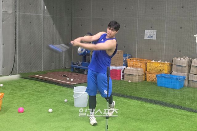 삼성 라이온즈의 '막내' 투수 배찬승이 방망이를 잡았다. 무슨 일일까.