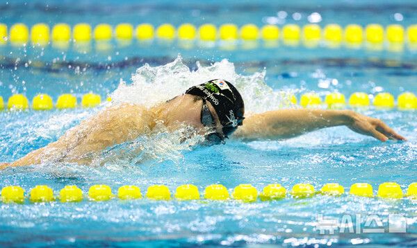 그는 2023년 항저우 아시안게임에서 세운 자신의 기록 1분44초40을 0.48초 단축하며 한국 신기록을 세웠을 뿐만 아니라, 쑨양(중국)이 2017년에 세운 1분44초39를 넘어서는 아시아 신기록까지 작성했다.