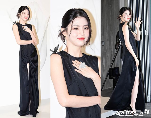 블랙 롱 드레스를 착용한 한소희는 고혹적인 자태로 등장해 탄성을 자아냈다. 깊게 트인 라인으로 극세사 각선미를 과시했다. 특히 오른쪽 어깨에 올려진 검은색 나비가 한소희의 꽃다운 미모를 돋보이게 만들었다.
