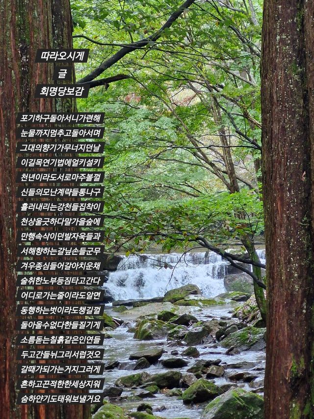 눈물까지멈추고돌아서며 그대의향기가무너지던날 이길목연기법에얼키설키 천년이라도서로마주볼껄 신들의모난계략들통나구 흘러내리는강천들집착이 천상울긋하다말가을숲에 만행속삭이던발자욱들과 서해향하는갈닢손들군무 겨우종심들어갈아치운채 술취한노부등짐타고간다 어디로가는줄이라도알면 동행하는벗이라도챙길껄 돌아올수없다한들질기게 소름돋는칠흙같은인연들 두고간들뉘그리서럽것오 갈때가되가는거지그러게