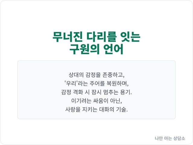 The post 싸울 때 절대 하지 말아야 할 말 vs 관계를 살리는 말 appeared first on 나만 아는 상담소.